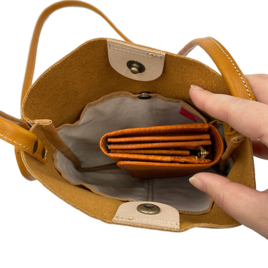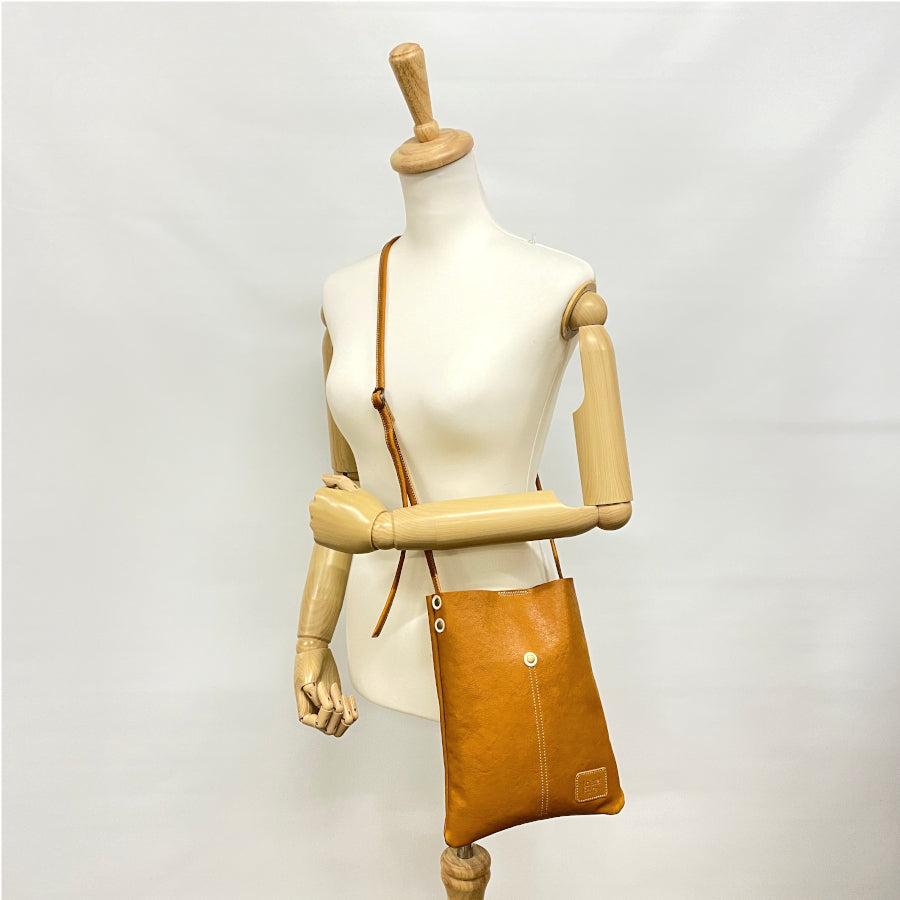 バングラデシュ革を使った裏地なしの軽いバッグ。