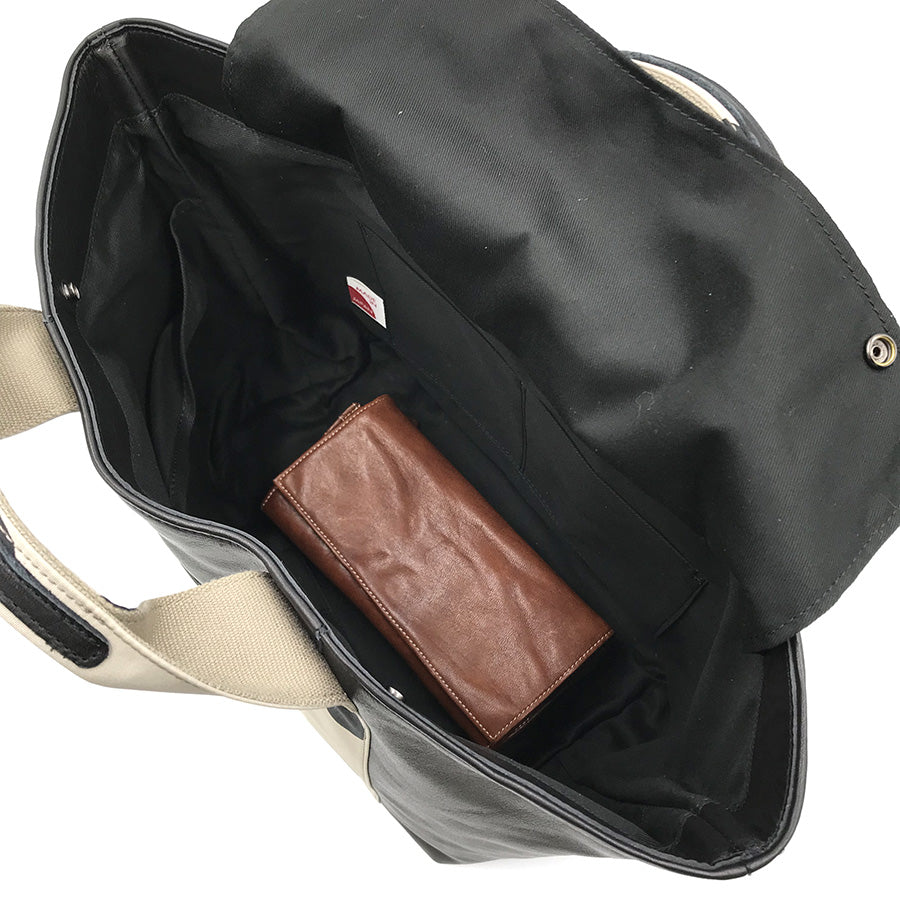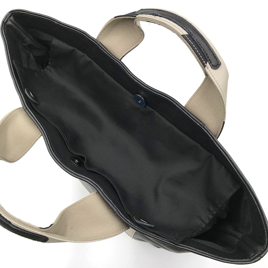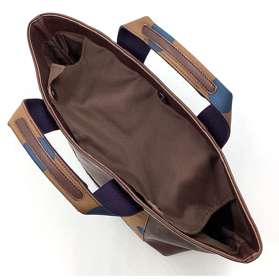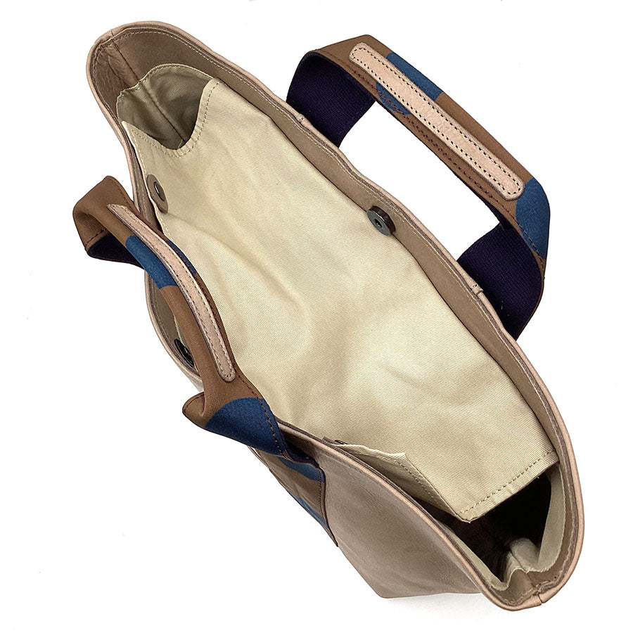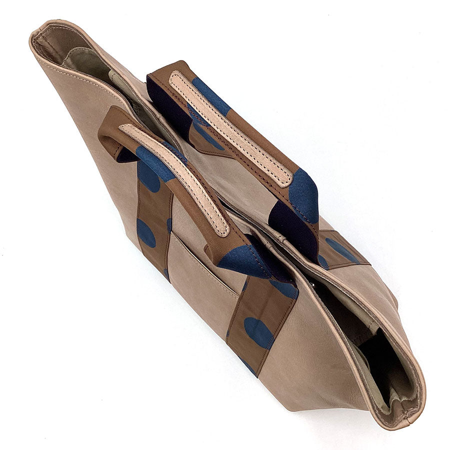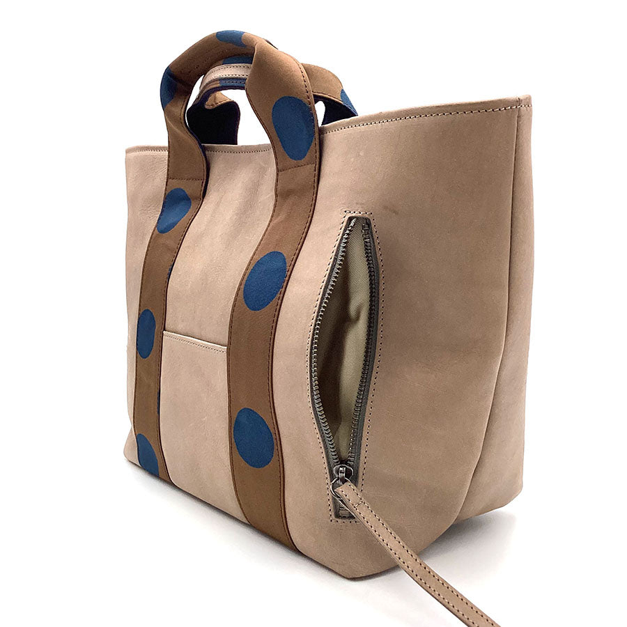 ドット柄テープがアクセントになったハンドバッグ。本体には、マットな質感が美しい牛革を使用。自然な濃淡やツヤ感が楽しめる、表情豊かな素材です。本体をシンプルなデザインにすることで、ドット柄のテープを引き立たせ、カジュアルにもきれいめにも合わせやすいアイテムに仕上がりました。