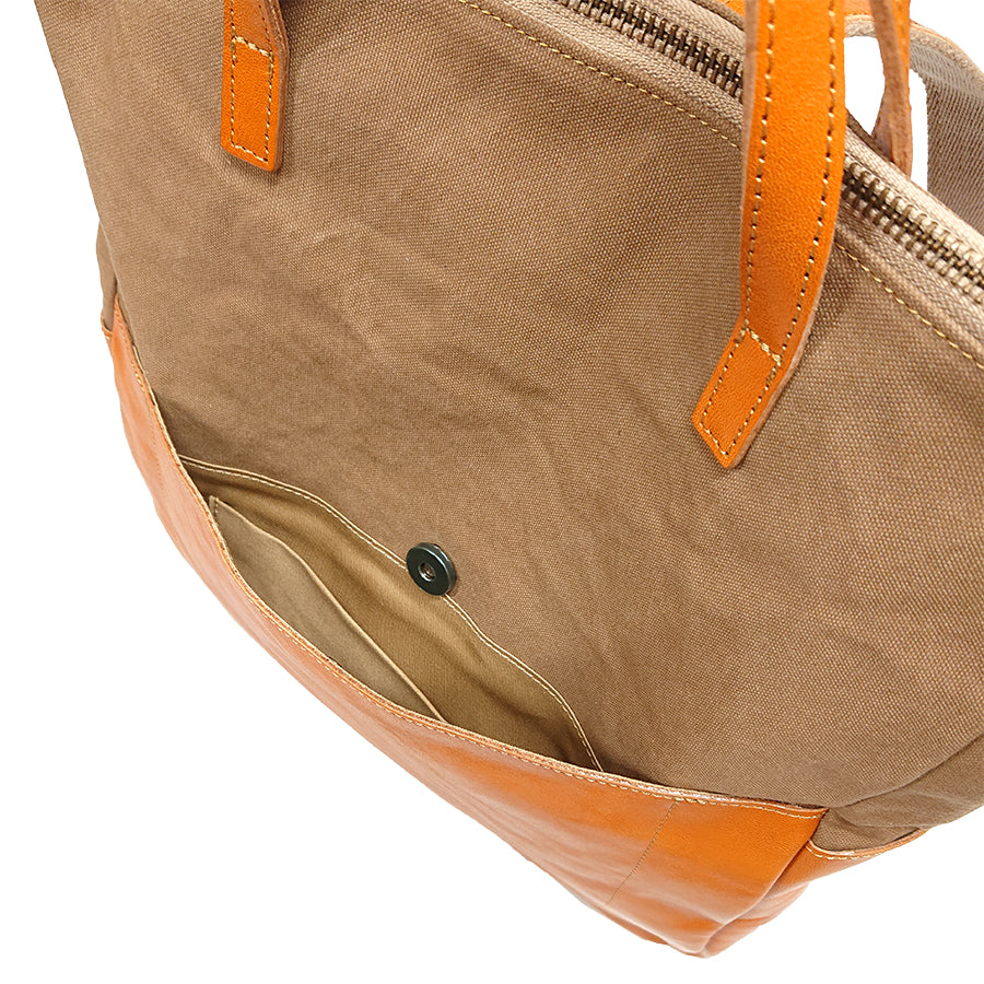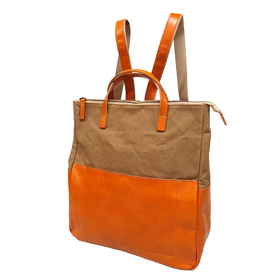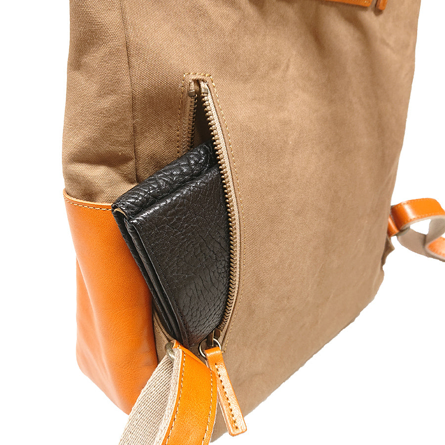 幌布と革のコンビで軽さが特徴のリュックです